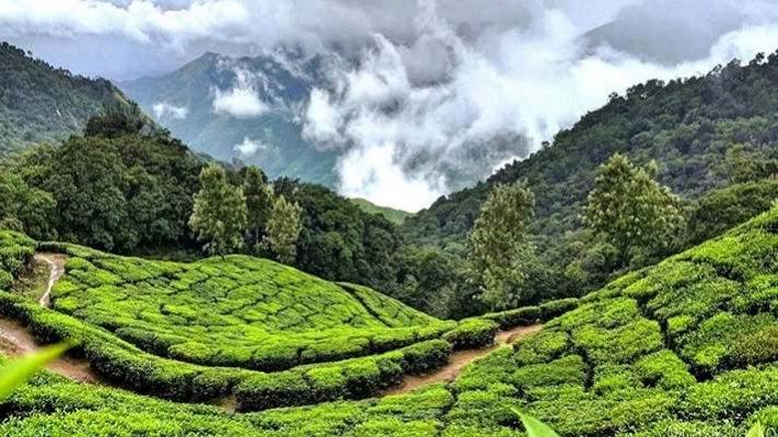 1. Tea Gardens of Munnar: Munnar is famous for its sprawling tea plantations, and the drive from Munnar to Thekkady takes you through picturesque tea gardens. You can witness the neatly manicured tea bushes on rolling hills, creating a soothing green carpet that stretches as far as the eye can see.