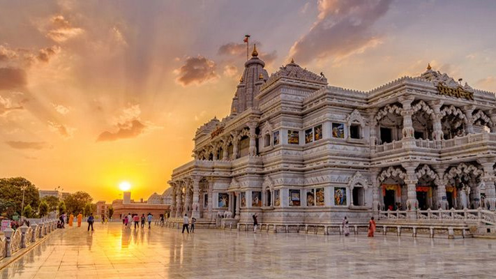 - Temples: Vrindavan is known for its numerous temples, with over 5,000 dedicated to Lord Krishna. The most famous temples include the Banke Bihari Temple, the ISKCON Temple, the Radha Vallabh Temple, and the Prem Mandir. These temples are known for their stunning architecture, intricate carvings, and beautiful idols of Lord Krishna and Radha.